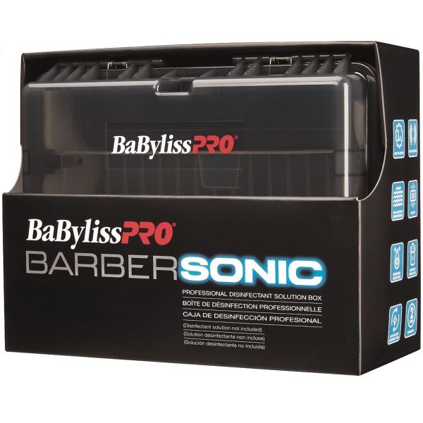 Ensure the highest standards of hygiene with the Barber Sonic Professional Disinfectant Solution Box. This solution box is designed to disinfect your grooming tools, especially BaBylissPRO® Premium Trimmer Guards, ensuring they remain clean and safe for each client. Maintain a professional and sanitary grooming environment with this essential accessory. It is the first to market barber disinfectant solution box with sonic vibrations.
